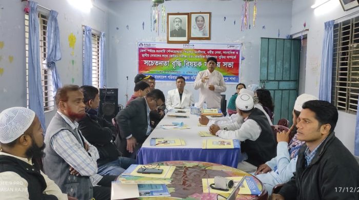 বাংলার আকাশ নিউজ ২৪ ডেস্কঃ ফরিদপুরে জেলা পর্যায়ে বিভিন্ন পর্যায়ের প্রতিনিধি স্থানীয় নেতাদের সাথে কোভিড-১৯ পরীক্ষা এবং প্রাথমিক চিকিৎসার সুবিধা সম্পর্কে আলোচনা সভা অনুষ্ঠিত হয়েছে। ১৭ই ডিসেম্বর শনিবার সকাল ১১টায়