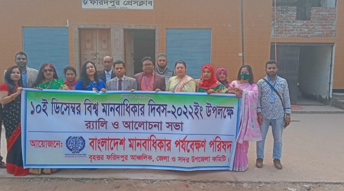 বাংলার আকাশ নিউজ ২৪ ডেস্কঃ ১০ ডিসেম্বর বিশ্ব মানবাধিকার দিবস ২০২২ উপলক্ষে বাংলাদেশ মানবাধিকার পর্যবেক্ষণ পরিষদের বৃহত্তর ফরিদপুর আঞ্চলিক ও ফরিদপুর জেলা ও সদর উপজেলা কমিটির উদ্যোগে একটি রেলি