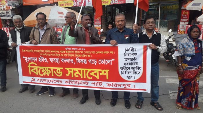 বাংলার আকাশ নিউজ ২৪ ডেস্কঃ দুঃশাসন হটাও,ব্যাবস্থা বদলাও,বিকল্প গড়ে তোলো এই দাবিতে ফরিদপুর জেলা কমিউনিস্ট পার্টির উদ্যোগে উক্ত সংগঠনের কেন্দ্রীয় কমিটির সদস্য ও ফরিদপুর জেলার সভাপতি জনাব আজাদ আবুল কালাম