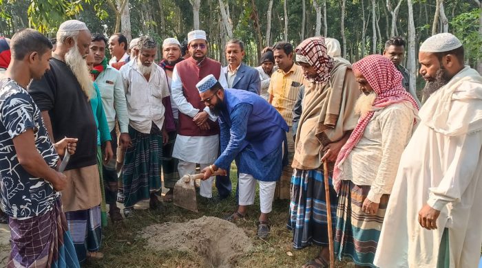 বাংলার আকাশ ডেস্কঃ ফরিদপুর সদর উপজেলার আওতাধীন কানাইপুর ইউনিয়নের কাশিমাবাদ গ্রামের ঐতিহ্যবাহী কবর স্থান সংলগ্ন জামে মসজিদের তিনতলা ফাউন্ডেশন এর নির্মান কাজের ভিত্তি প্রস্তর স্থাপন করেছেন ইউনিয়ন পরিষদের চেয়ারম্যান ফকির