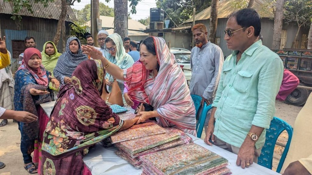 এ সময় ফরিদপুর পৌরসভার ৫ নম্বর ওয়ার্ডের পূর্ব গঙ্গাবতী এলাকায় দরিদ্র মানুষের মাঝে ঈদ বস্ত্র বিতরণ করা হয়। পরে কৃষ্ণনগর ইউনিয়ন পরিষদ প্রাঙ্গণে গরিব ও দুস্থ পরিবারের মাঝে ভিজিএফের চাল বিতরণ করা হয়।